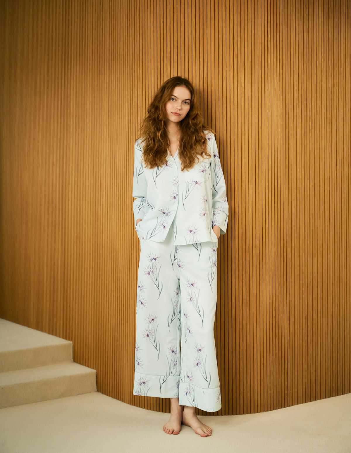 清らかなカラーリングで仕上げたフラワーパジャマから
